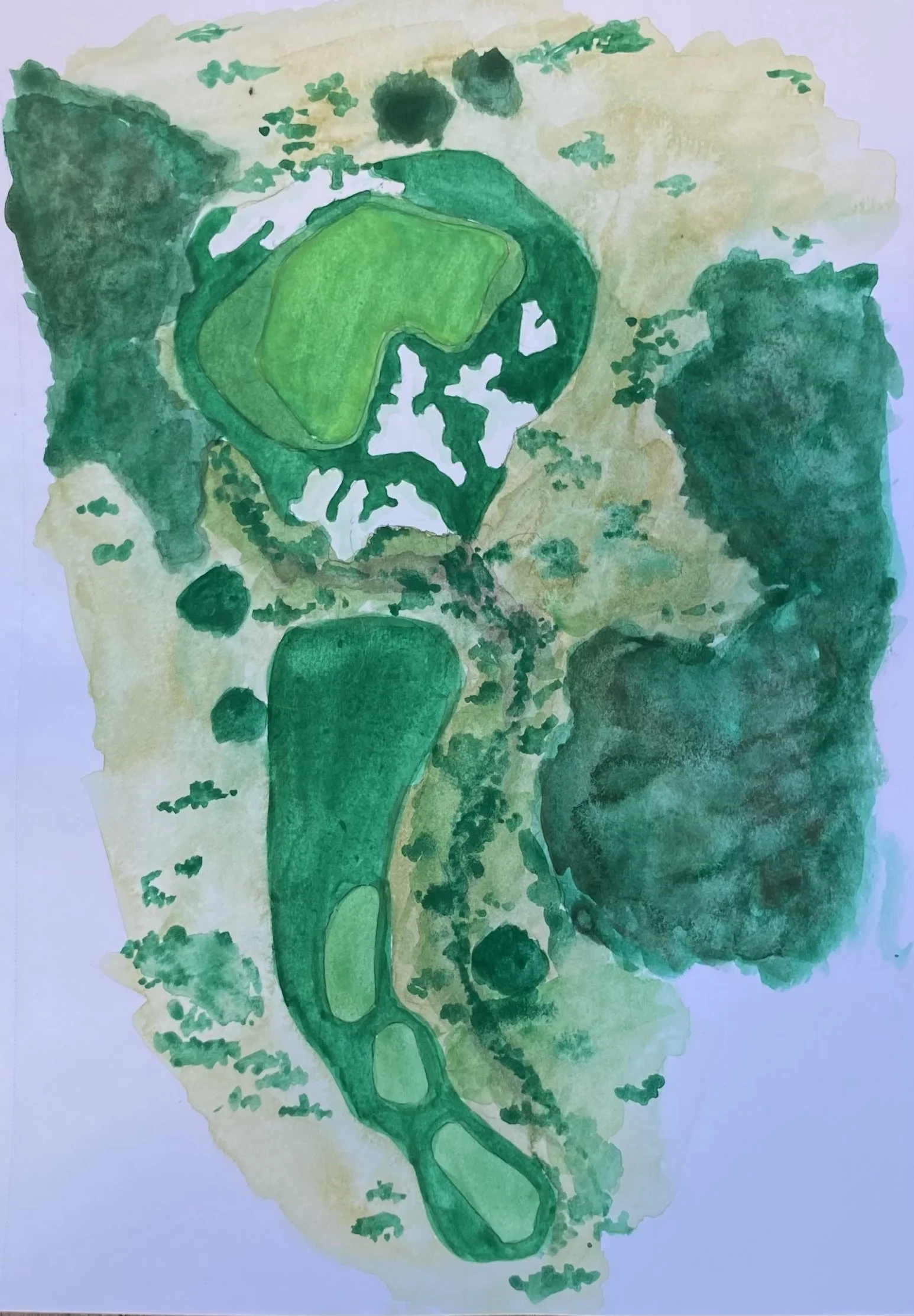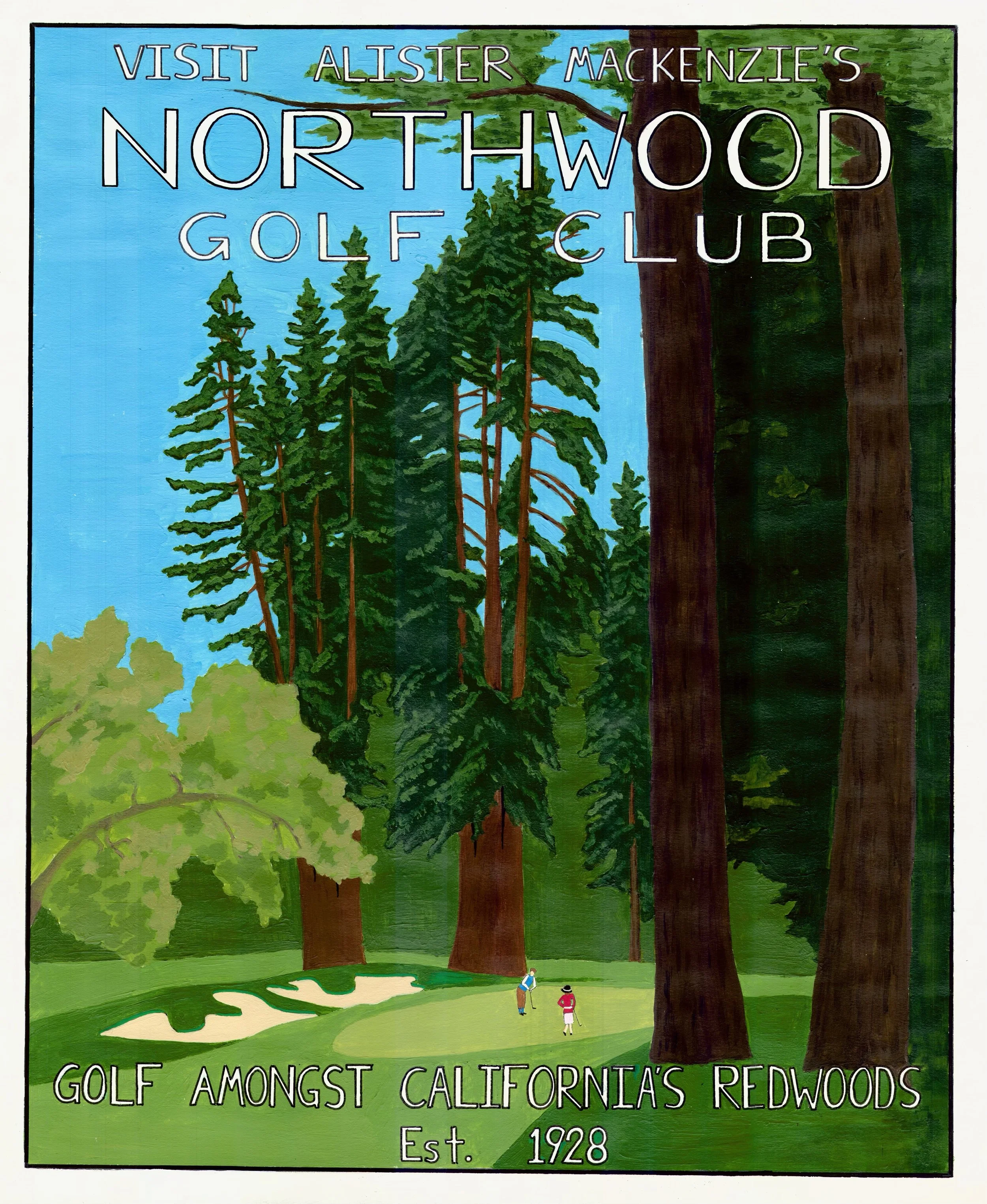 Aerial view of a par three similar to 15 at Pasatiempo (watercolor) Poster for Northwood Golf Club (acrylic)