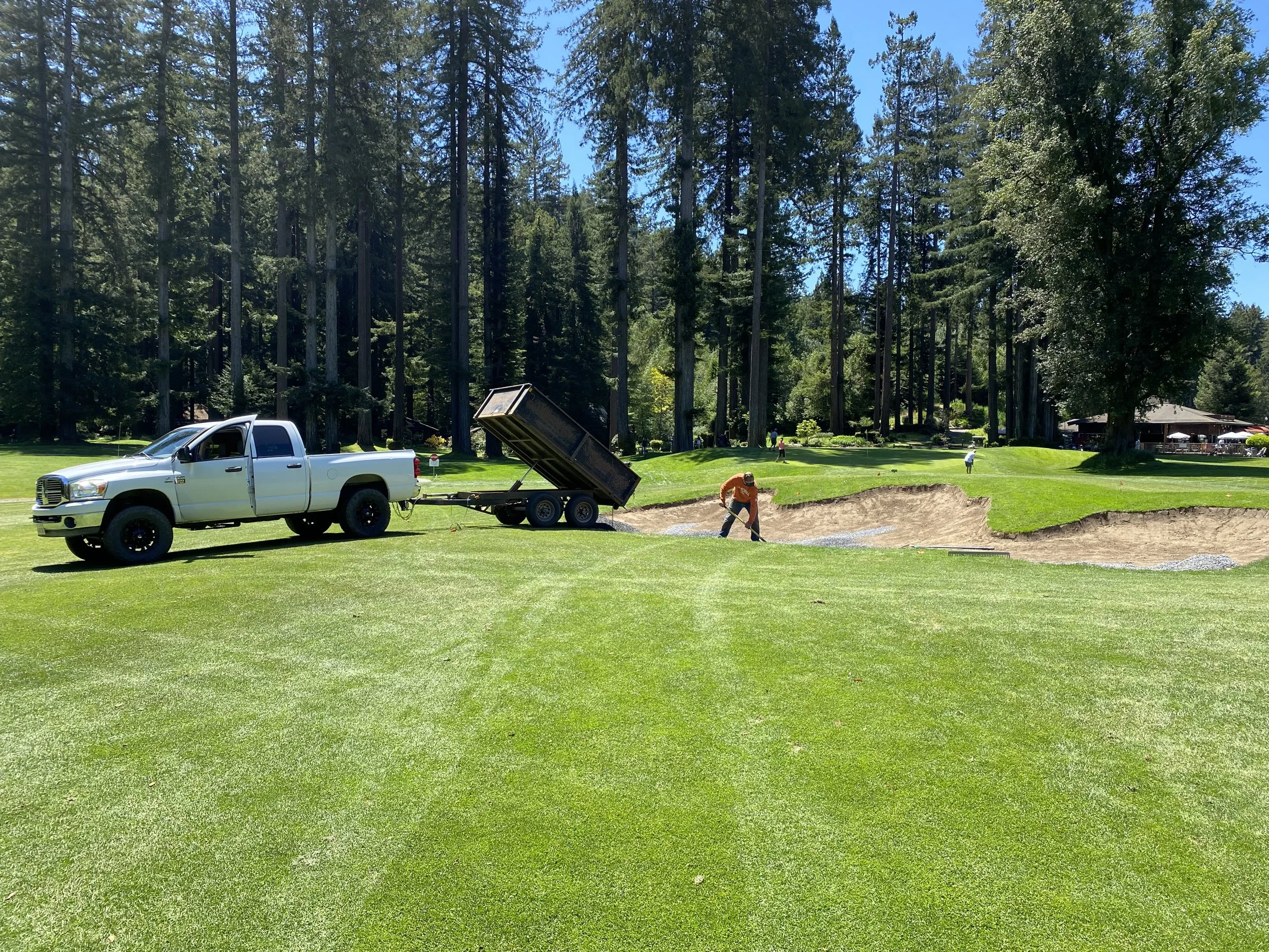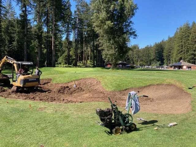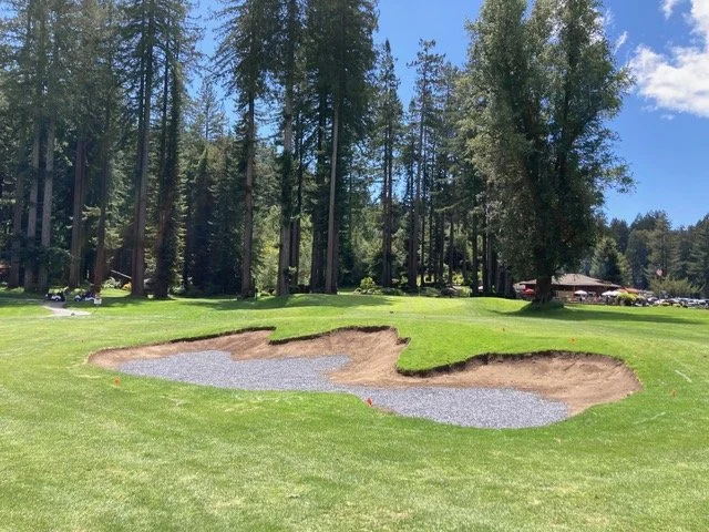 The longest delay for getting the project started was material sourcing but we were able to begin excavation and initial shaping on April 25th. During excavation we came across layers of sand in the soil, confirming the outline of the original bunker. By May the excavation was finished and drainage and liner were ready to be installed. The bunker was finished on May 8th.